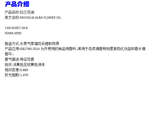 香料 白兰花油 玉兰花提取 白兰花精油 92457-18-6